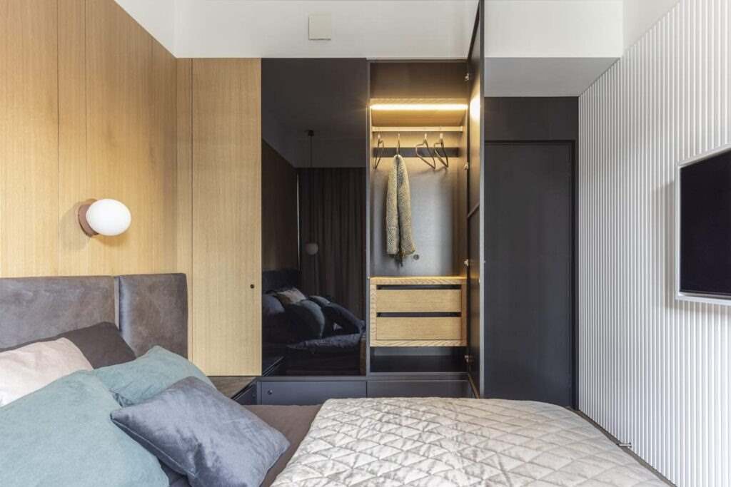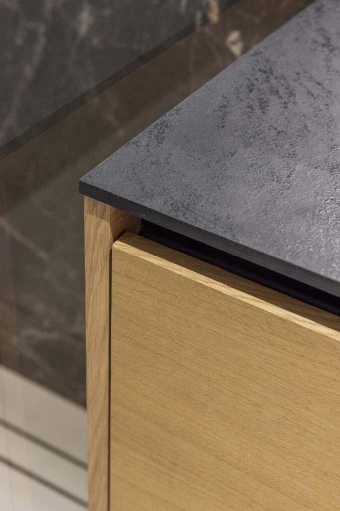 Meble proste w formie funkcjonalne, ciepłe w dotyku dzięki zastosowaniu okładziny z forniru dębowego naturalnie olejowanej